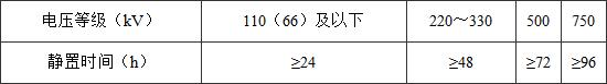表3.0.3 油浸式变压器及电抗器电压等级与充油后静置时间关系