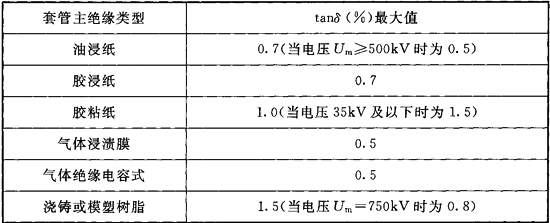 1)套管主绝缘的介质损耗因数(tanδ)超过本标准表15.0.3中的规定值;