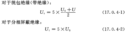17.0.4 标准中引进了U0/U的概念后,直流耐压试验标准与U0和U均有关,特别是具有统包绝缘的电缆,不但考虑相间绝缘,还考虑了相对地绝缘。