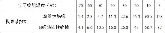 B.0.1 电机定子绕组绝缘电阻值换算至运行温度时的换算系数应按表B.0.1的规定取值。