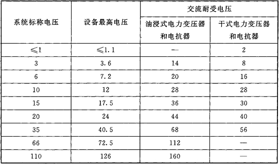 表D.0.1 电力变压器和电抗器交流耐压试验电压值(kV)