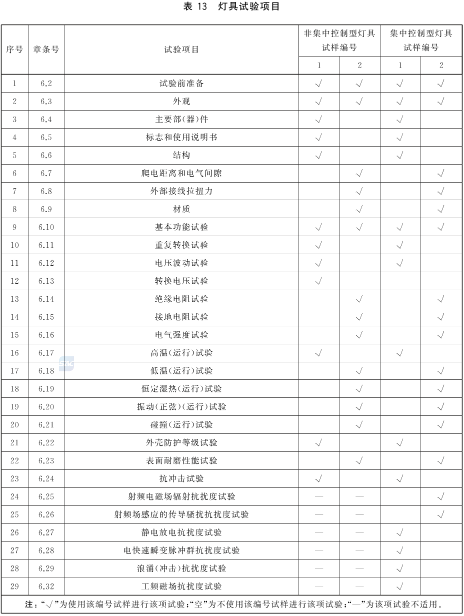 灯具按表13规定的试验项目进行试验,应急照明控制器按表14规定的试验项目进行试验,应急照明集中电源按表15规定的试验项目进行试验,应急照明配电箱按表16规定的试验项目进行试验。